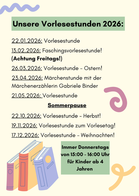 Kommen Sie doch einfach mal vorbei! Das Büchereiteam freut sich auf Ihren Besuch!